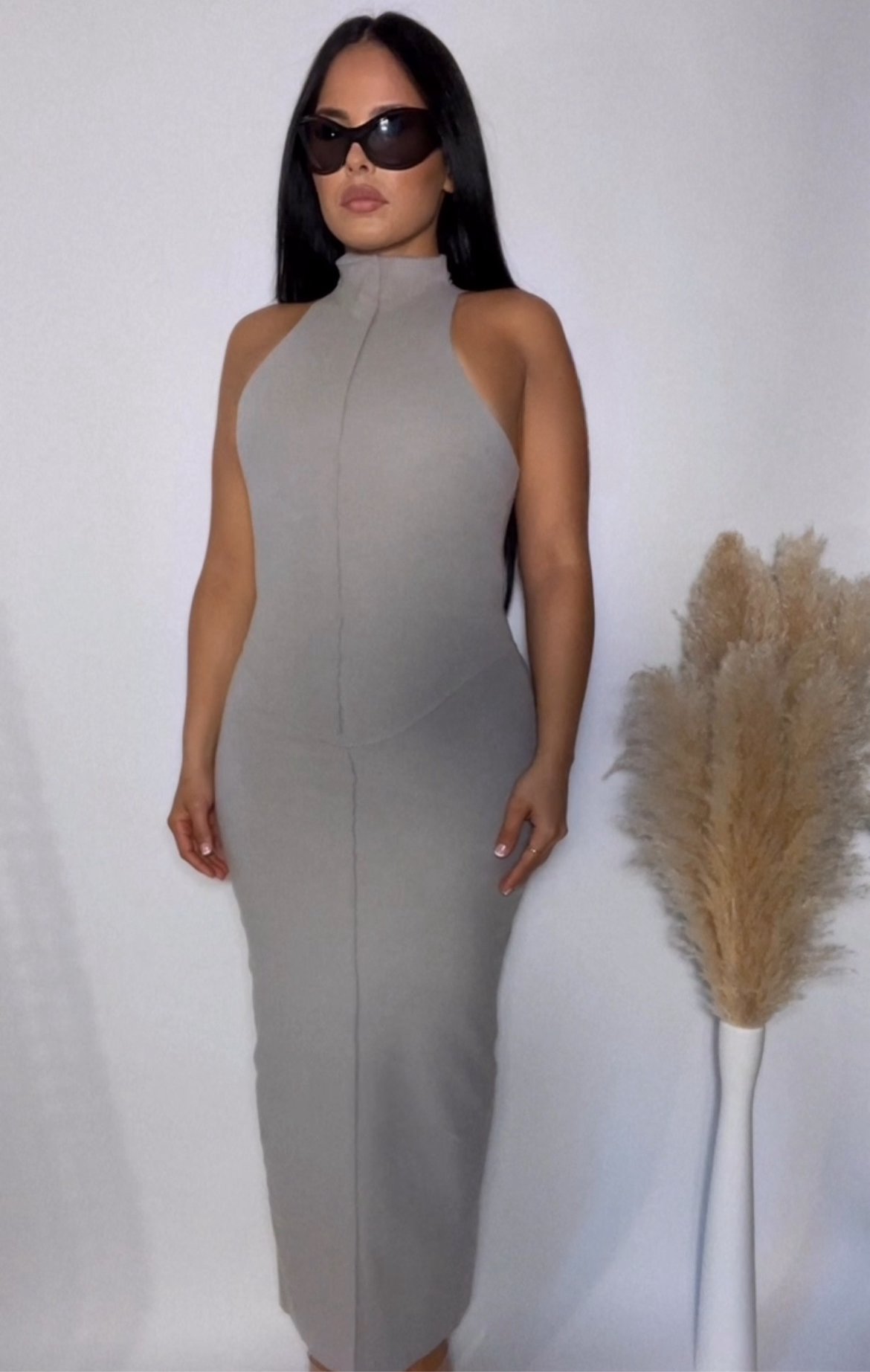 BBTM CHIC TIANA MARIE HIGH NECK dress TAUPE GREY