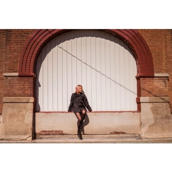 Black oversized button up with a bow tie, with large sleeve cuffs.